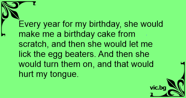 Every year for my birthday, she would make me a birthday cake from scratch, and then she would let me liск the egg beaters. And then she would turn them on, and that would hurt my tongue.