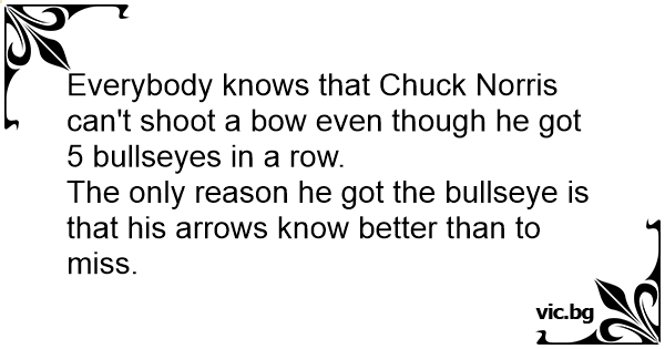 Everybody knows that Chuck Norris can't shoot a bow even though he got 5 bullseyes in a row.