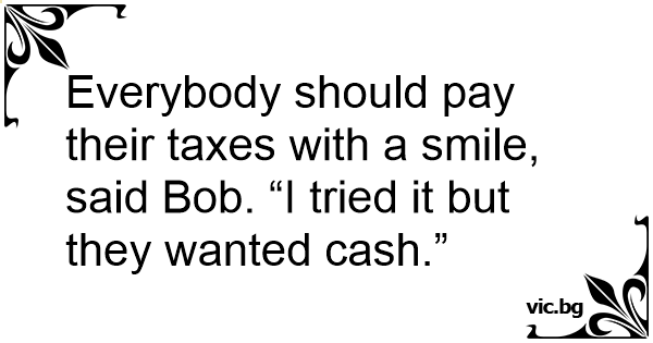 Everybody should pay their taxes with a smile, said Bob. “I tried it but they wanted cash.”