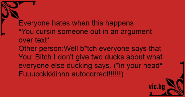 You: Вiтсh I don't give two ducks about what everyone else ducking says. (*in your head* Fuuucckkkiinnn autocorrect!!!!!!)