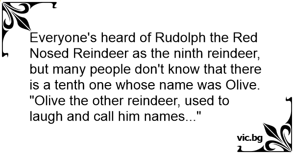 Everyone's heard of Rudolph the Red Nosed Reindeer as the ninth reindeer, but many people don't know that there is a tenth one whose name was Olive.