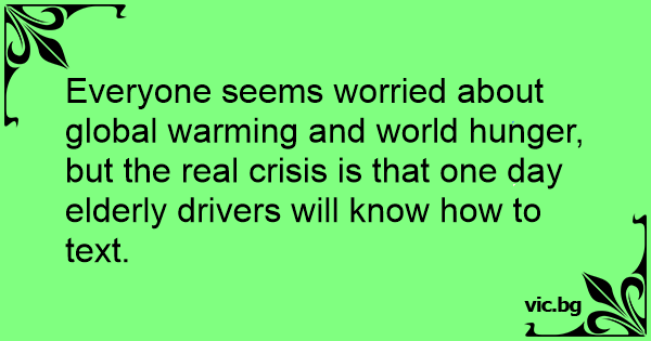 Everyone seems worried about global warming and world hunger, but the real crisis is that one day elderly drivers will know how to text.