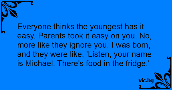 Everyone thinks the youngest has it easy. Parents took it easy on you. No, more like they ignore you. I was born, and they were like, 'Listen, your name is Michael. There's food in the fridge.'