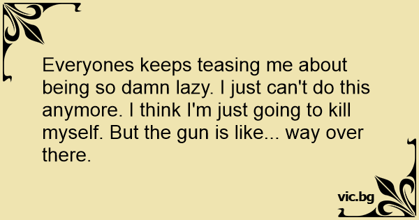Everyones keeps teasing me about being so dамn lazy. I just can't do this anymore. I think I'm just going to кill myself. But the gun is like... way over there.
