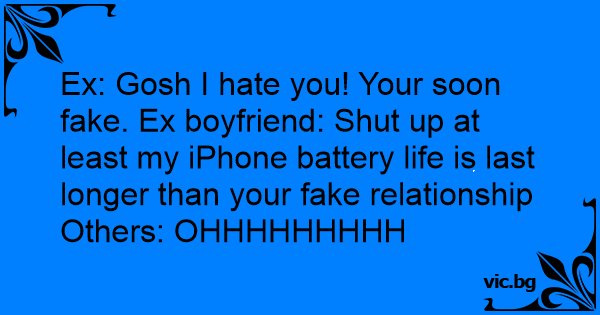 Ex: Gosh I hate you! Your soon fake. Ex boyfriend: Shut up at least my iPhone battery life is last longer than your fake relationship