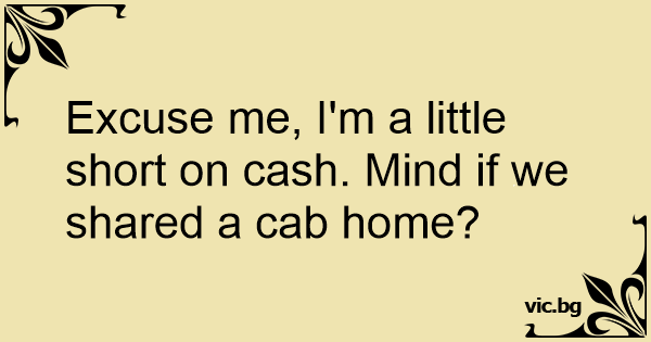 Excuse me, I'm a little short on cash. Mind if we shared a cab home?