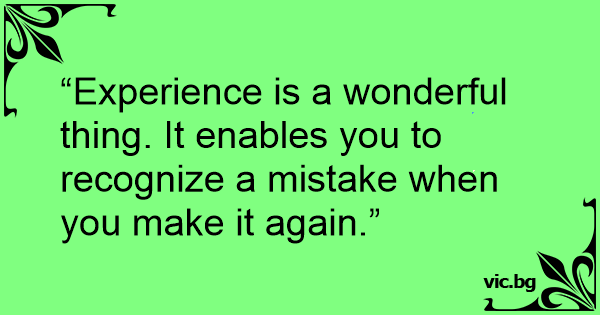 “Experience is a wonderful thing. It enables you to recognize a mistake when you make it again.”