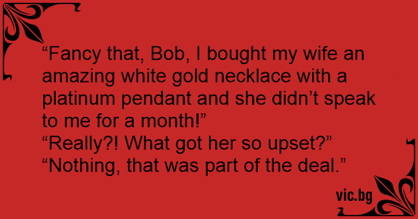 “Fancy that, Bob, I bought my wife an amazing white gold necklace with a platinum pendant and she didn’t speak to me for a month!”