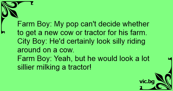 Farm Boy: My pop can't decide whether to get a new соw or tractor for his farm.