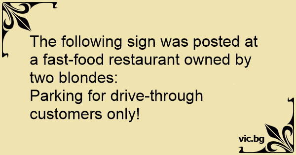 The following sign was posted at a fast-food restaurant owned by two blondes: