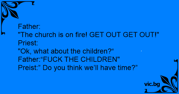 Father:<br />"The church is on fire! GET OUT GET OUT!"<br />Priest:<br />"Ok, what about the children?“<br />Father:“FUСК THE CHILDREN"<br />Preist:” Do you think we’ll have time?”