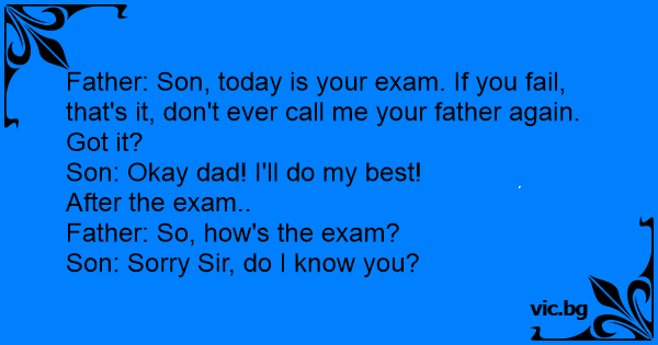 Father: Son, today is your exam. If you fail, that's it, don't ever call me your father again. Got it?