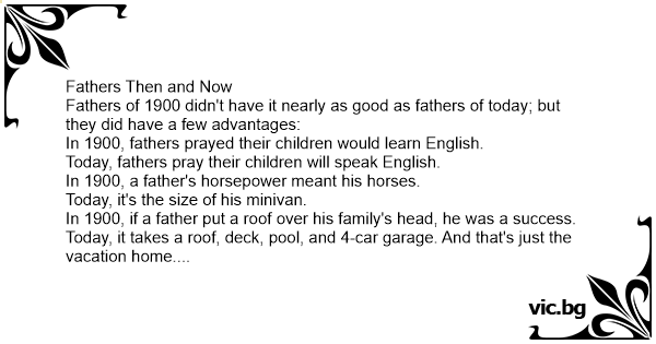 Fathers of 1900 didn't have it nearly as good as fathers of today; but they did have a few advantages: