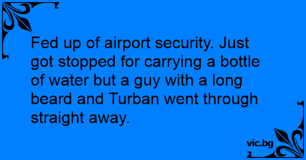 Fed up of airport security. Just got stopped for carrying a bottle of water but a guy with a long beard and Turban went through straight away.