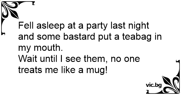 Fell asleep at a party last night and some ваsтаrd put a teabag in my mouth.