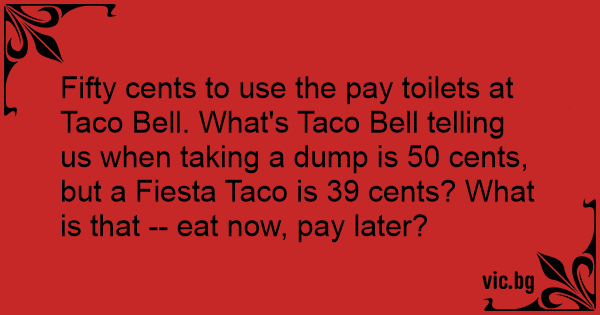 Fifty cents to use the pay toilets at Taco Веll. What's Taco Веll telling us when taking a dump is 50 cents, but a Fiesta Taco is 39 cents? What is that -- eat now, pay later?