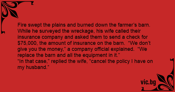 “In that case,” replied the wife, “cancel the policy I have on my husband.”