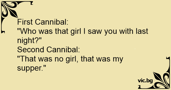 First Cannibal: "Who was that girl I saw you with last night?" Second Cannibal: "That was no girl, that was my supper."