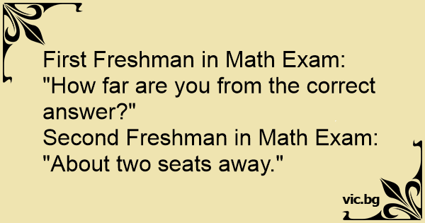 Second Freshman in Math Exam: "About two seats away."