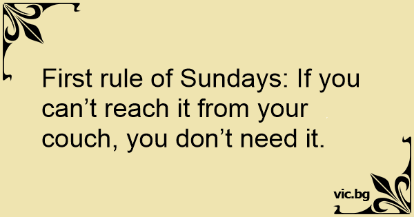First rule of Sundays: If you can’t reach it from your couch, you don’t need it.