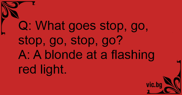 A: A blonde at a flashing red light.