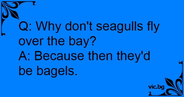 Q: Why don't seagulls fly over the bay?<br />A: Because then they'd be bagels.