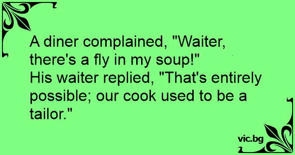 His waiter replied, "That's entirely possible; our cook used to be a tailor."
