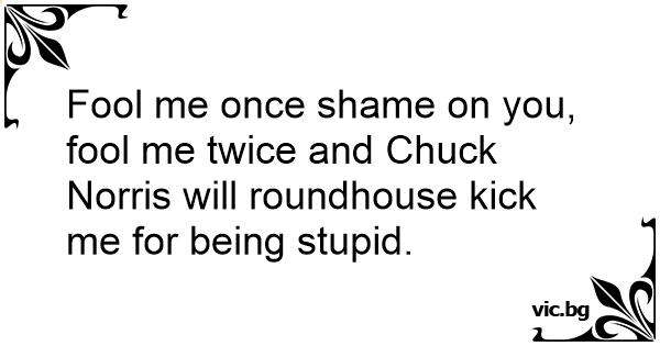 Fool me once shame on you, fool me twice and Chuck Norris will roundhouse kick me for being sтuрid.