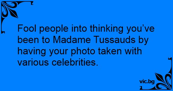 Fool people into thinking you’ve been to Madame Tussauds by having your photo taken with various celebrities.