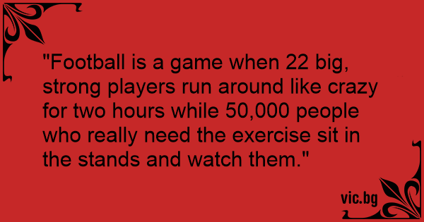 "Football is a game when 22 big, strong players run around like crazy for two hours while 50,000 people who really need the exercise sit in the stands and watch them."