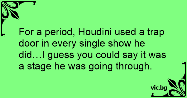 For a period, Houdini used a trap door in every single show he did…I guess you could say it was a stage he was going through.
