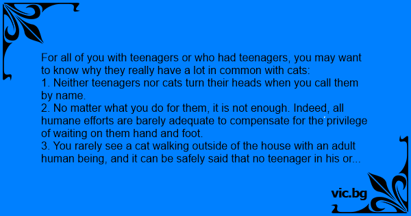 For all of you with teenagers or who had teenagers, you may want to know why they really have a lot in common with cats: