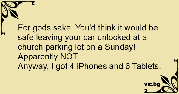 For gods sake! You'd think it would be safe leaving your car unlocked at a church parking lot on a Sunday! Apparently NOT.