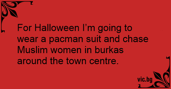 For Halloween I’m going to wear a pacman suit and chase Muslim women in burkas around the town centre.