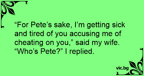 “For Pete’s sake, I’m getting sick and tired of you accusing me of cheating on you,” said my wife.