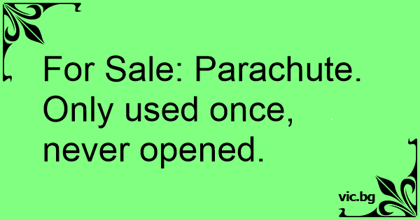 Inserzione giornalistica: Vendesi paracadute. Usato una sola volta. Mai aperto. Piccola macchia.