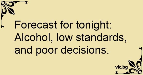 Forecast for tonight: Alcohol, low standards, and poor decisions.
