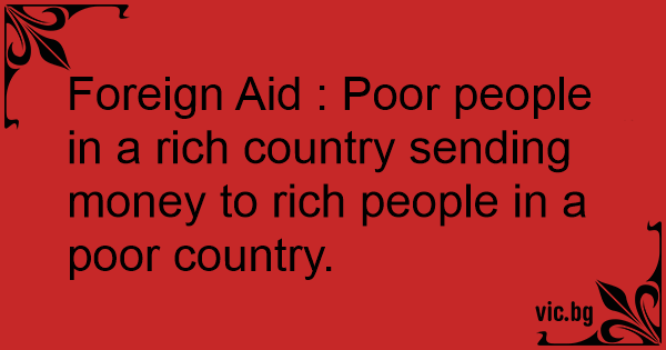 Foreign Aid : Poor people in a rich country sending money to rich people in a poor country.