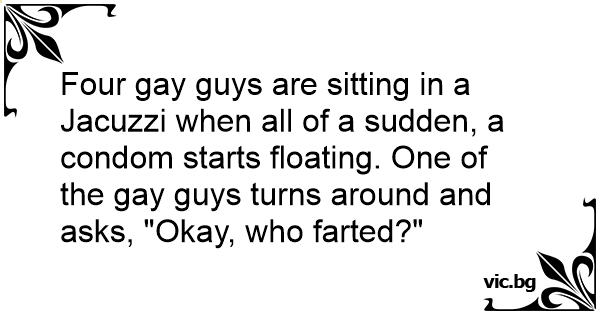 Four gаy guys are sitting in a Jacuzzi when all of a sudden, a соndом starts floating. One of the gаy guys turns around and asks, "Okay, who farted?"