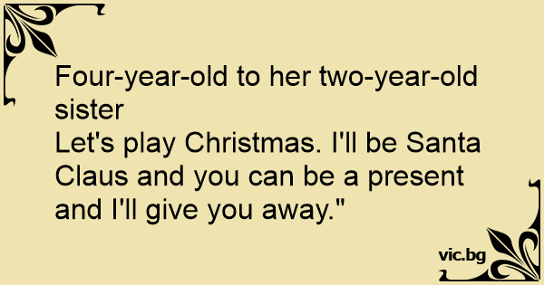 Let's play Christmas. I'll be Santa Claus and you can be a present and I'll give you away."