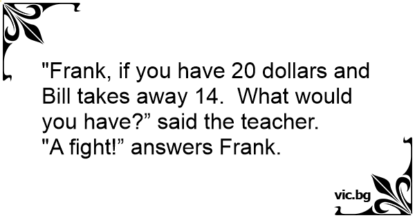 "Frank, if you have 20 dollars and Bill takes away 14. What would you have?” said the teacher.