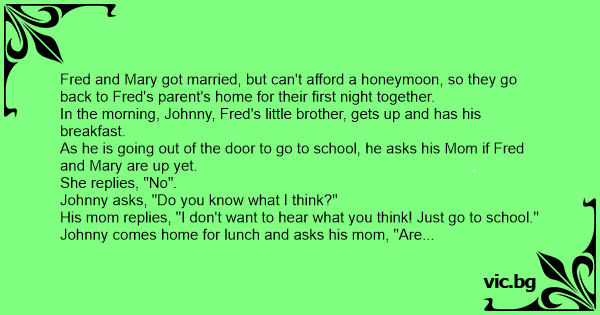 After school, Johnny comes home and asks again, "Are Fred and Mary up yet?"