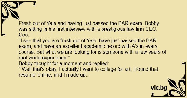 Fresh out of Yale and having just passed the BAR exam, Bobby was sitting in his first interview with a prestigious law firm CEO.