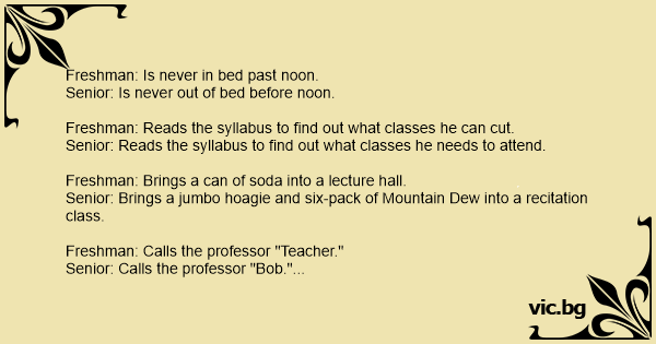 Freshman: Is never in bed past noon.