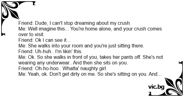 Me: Well imagine this... You're home alone, and your crush comes over to visit.