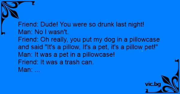 Friend: Oh really, you put my dog in a pillowcase and said "It's a pillow, It's a pet, it's a pillow pet!"