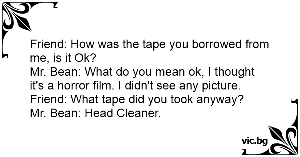 Friend: How was the tape you borrowed from me, is it Ok?
