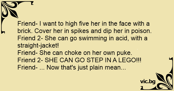 Friend 2- SHE CAN GO STEP IN A LEGO!!! Friend- ... Now that's just plain mean...