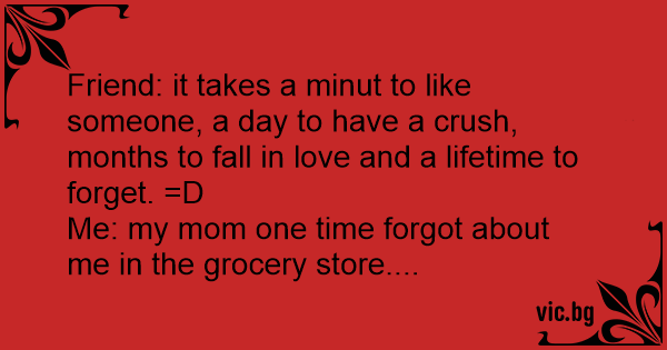 Friend: it takes a minut to like someone, a day to have a crush, months to fall in love and a lifetime to forget. =D