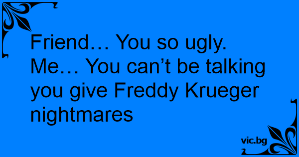 Friend… You so ugly. Me… You can’t be talking you give Freddy Krueger nightmares